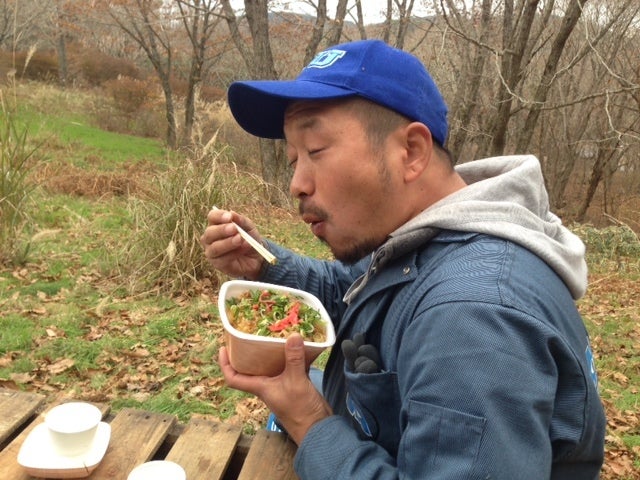 毎日のお昼ごはんは、山から下に降りて戻ってくる時間を節約するため朝にコンビニでお弁当を買って、お昼に食べていたんですが、気温に応じるように、それがカチンコチンだったのです。で、今日は、作業の合間に山から下におりまして、牛丼を買ってきました。あったかい!あったかいよ〜!!!おいしいよ〜!あったかいごはんはほんとうに心も温めてくれますね。ちなみにに今日の気温は、寒波のときに比べたら、何倍も楽です。冬将軍さん、もすこしこのままで。ああ、満足!(ぐっさん)