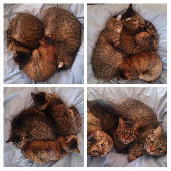 ネコのみなさんおめでとうございにゃす!この寒い時期うちの3匹はよくかたまります。毎日色んなフォーメーションを見せてくれます。