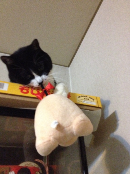 遊んでくれにゃいと化けてでるにゃ〜ってポーズのつくねちゃんです?