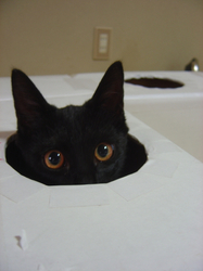 私がかいた森の絵を背景に、猫の可愛さは神秘!