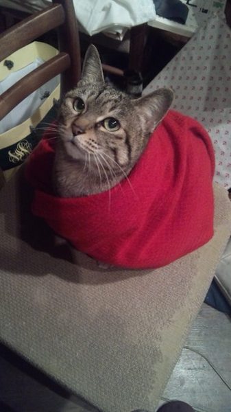 ネコ社長のチョコです。マフニャーでホットチョコ♪