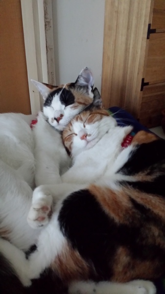 猫草に寄り添って寝るのは、いい香りがして、アロマテラピーになるんですにゃby海ちん