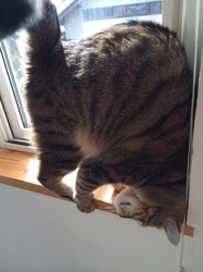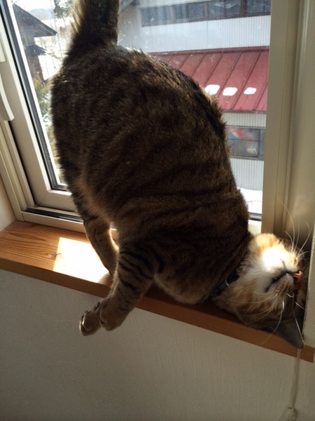 久々のお天気に、思わず窓際でごろりん。ぐりぐり。わー、落ちるって!(にゃこの母)