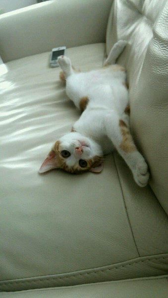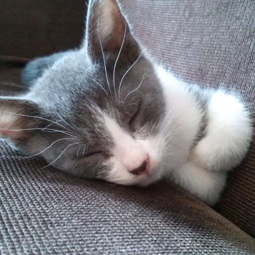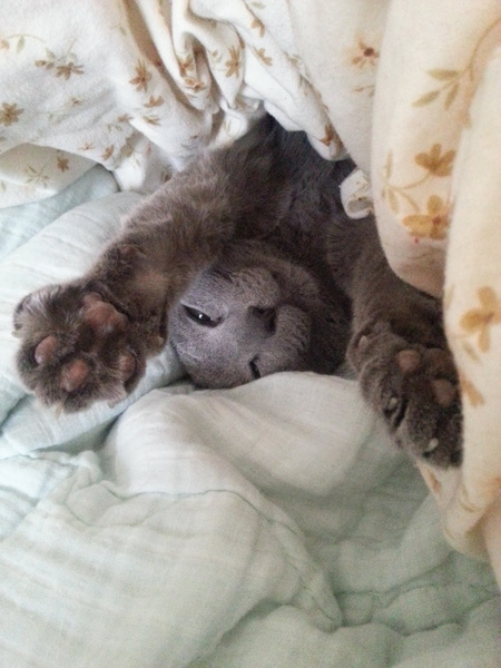 ぬくぬくだニャ〜お手手が開いちゃったニャ〜