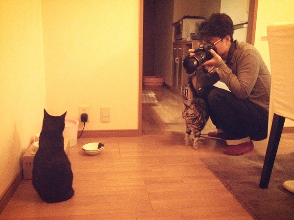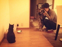 空っぽのお皿の前でなら、いつまでも気をつけ!してくれるジジさん1に気をつけ2に気をつけ3、4カリカリ5に缶詰