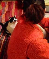 大好きな銀玉を早く投げてほしいのに、 飼い主はオリンピック観戦中。 しびれを切らしたチョビ子は、 激しくニャーーー!ニャァー!と叫んでおります。