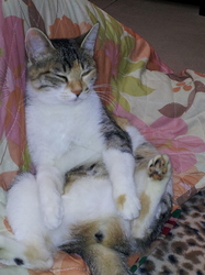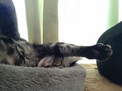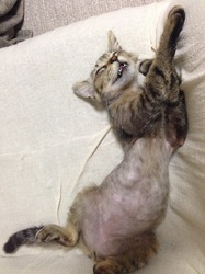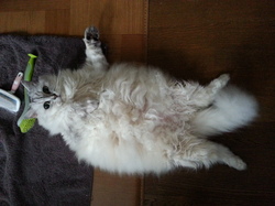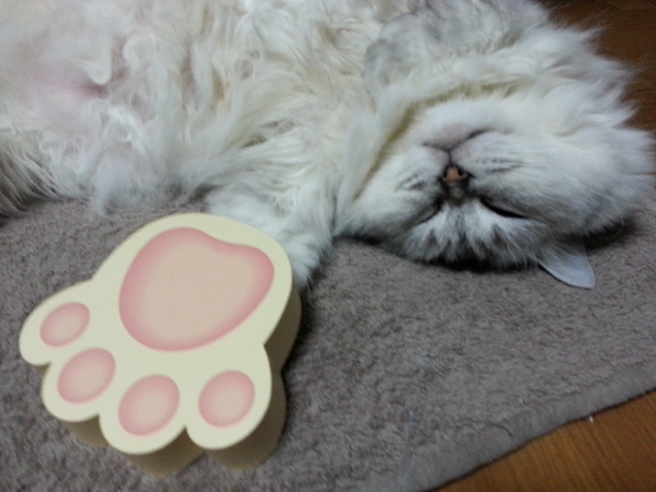 キャー 手ってが腫れちゃったぁ〜ホットカーペットの上だと お腹を見せちゃうのよいつもブラッシングしてもらってるからフワフワなのよお座りすると抜群の安定感ニャのよ