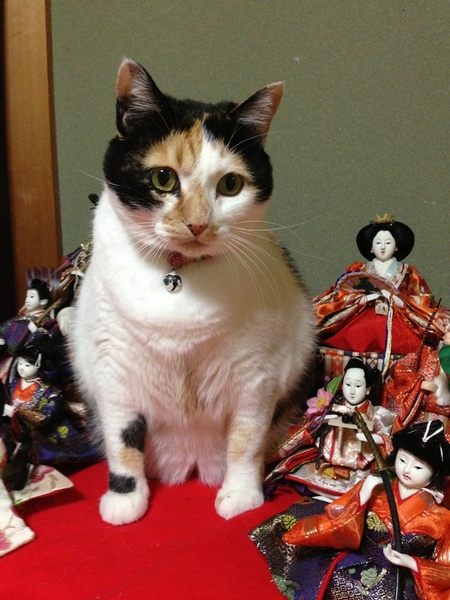 雛人形が大好きで箱から出すと一目散に飛び乗ってきます。写真は昨年のもの。