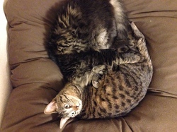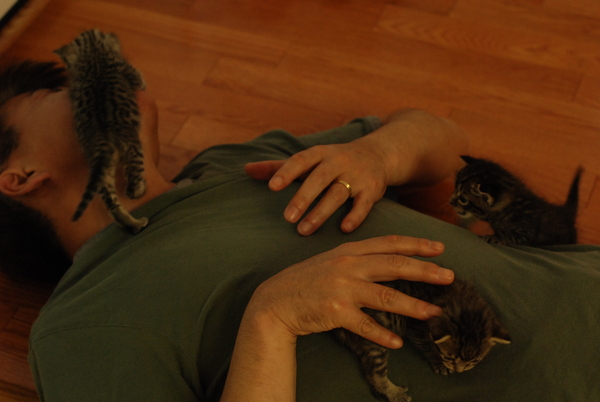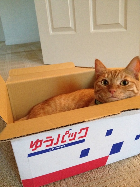 ほぼにゃちわ。箱入りドヤ顔がぐう、人間クライミング中の1匹がたらです。どちらもアメリカ人ですが、英語は全く理解しません。(生まれ変わるときは家猫希望)