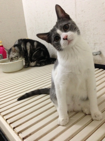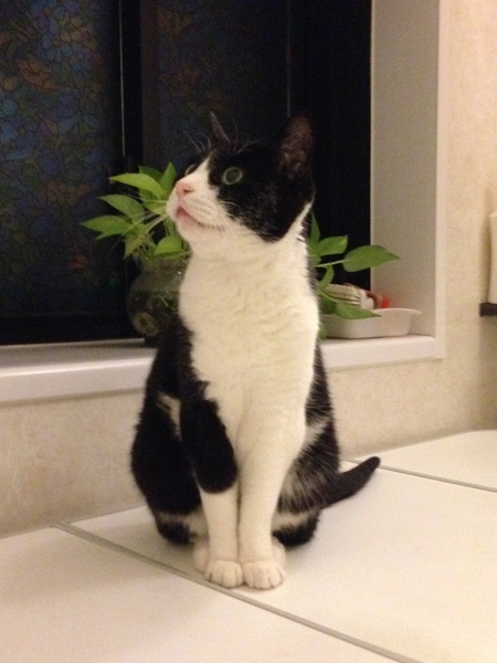 ネコの日、おめでとうございます。慢性腎不全治療中ですが、今年も元気にネコの日を迎えられて感謝!大好きなお風呂待ちをしていたら、待ちくたびれたにゃー