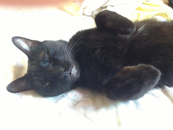 プーです。仔猫の時にシッポをおしゃぶり代わりにしていた癖で、未だに甘えたい時や眠い時に両手でシッポをしっかり持って、ガビガビやっています。