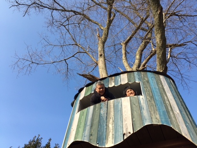 つなかんの裏にあるツリーハウスへ。