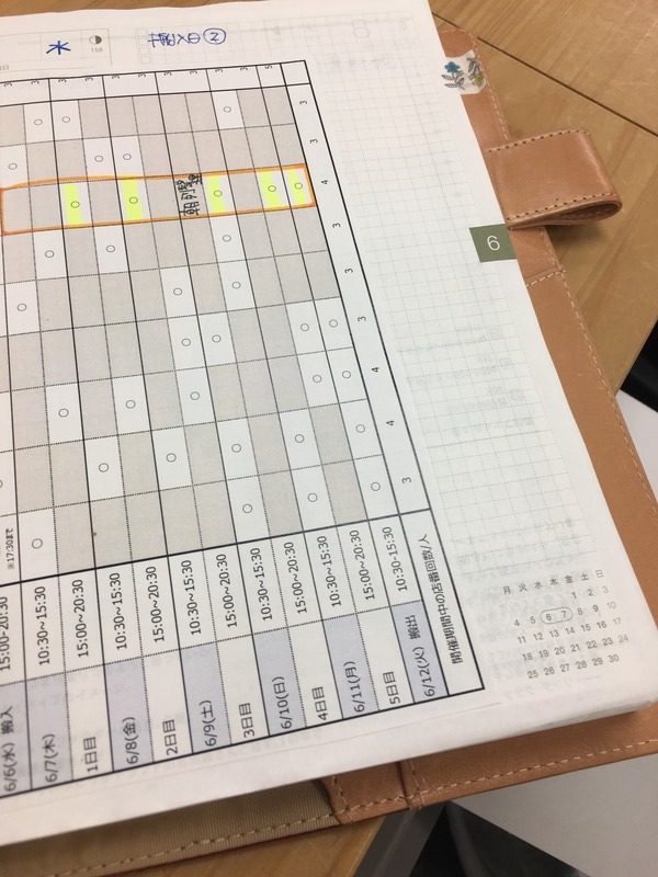 『生活のたのしみ展』のシフト表だ。