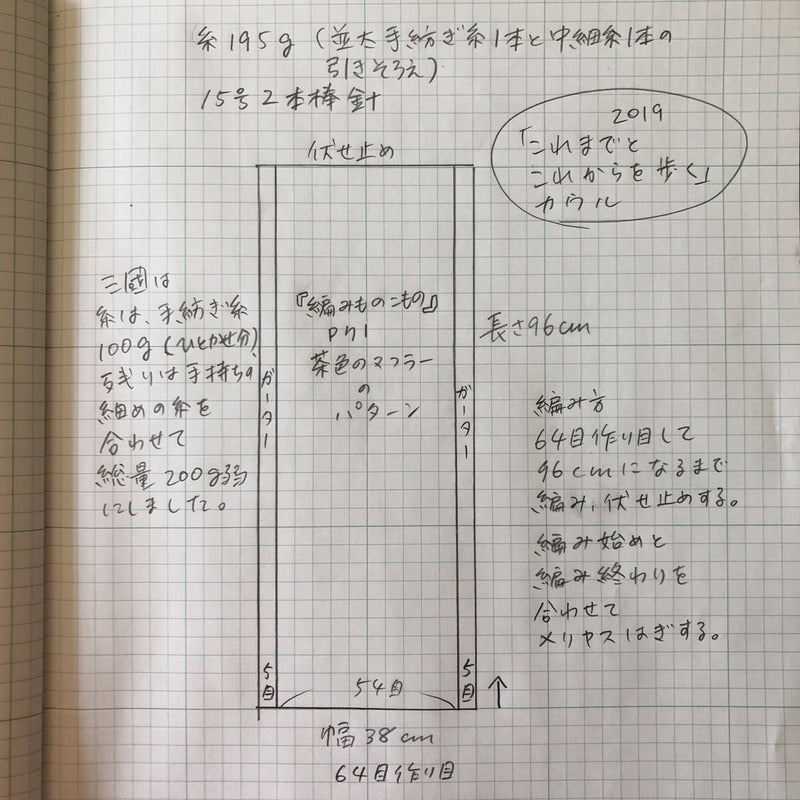 今回の旅で編むカウルの簡単な編み図です。
