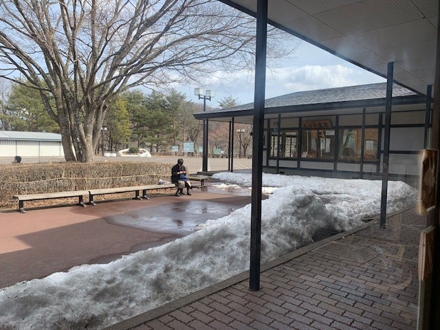 三國さんは外のベンチで