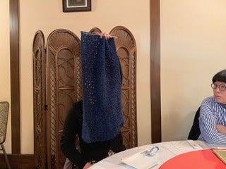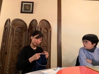 朝、光原社の可否館さんで編んでいたのと、