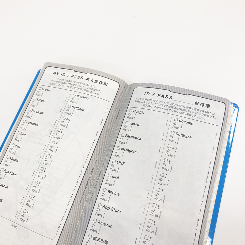 IDやパスワードを記録しておけるページなど、
