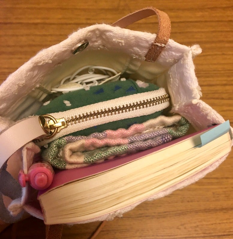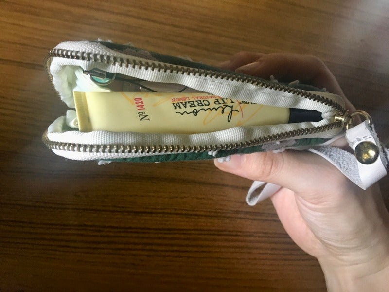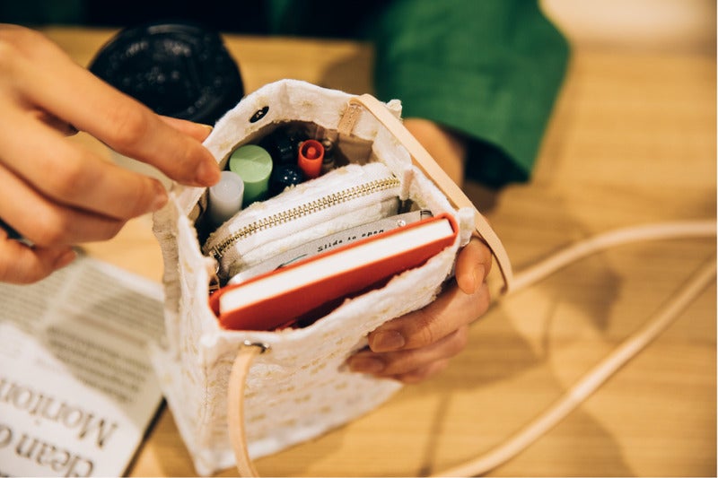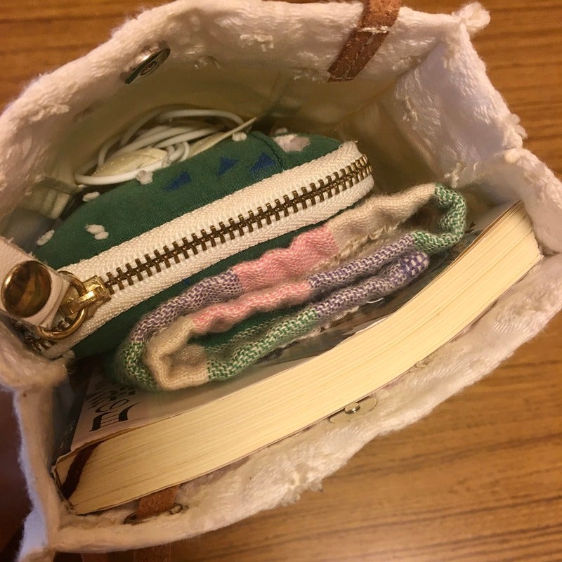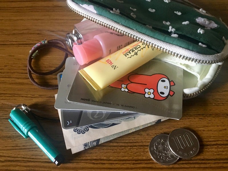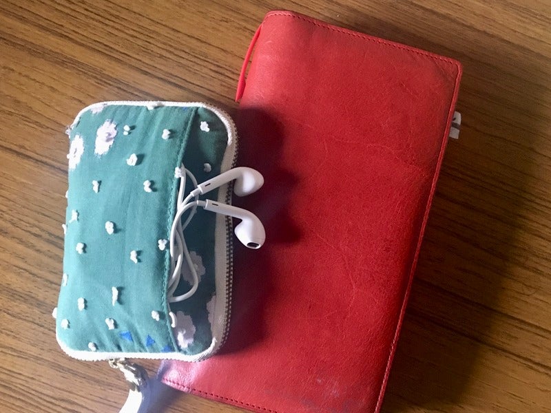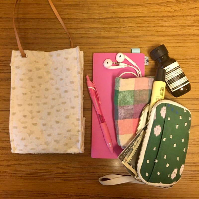 リップ、ハンドジェル、ハンカチ、イヤホン。