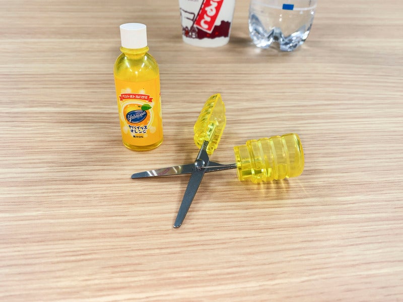 ペットボトルの底の部分が抜けてハサミが出てきます。