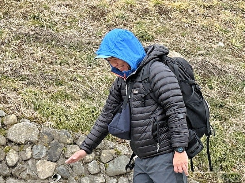 坂の下でアキレス腱のばしをしている人に