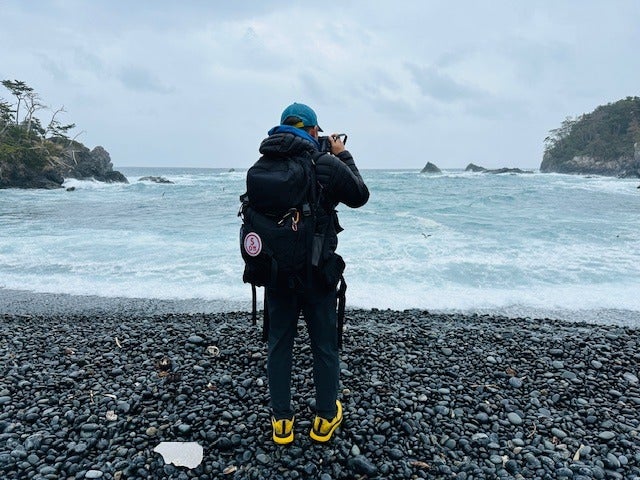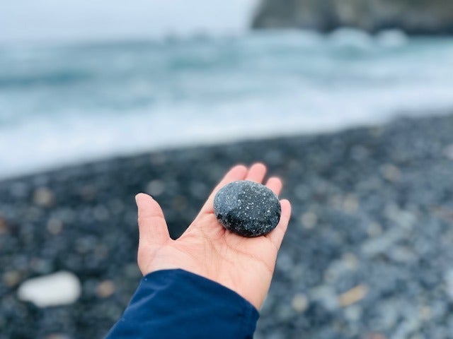 海にまんまる石を投げる。
