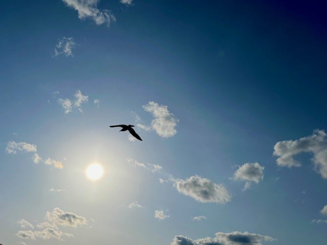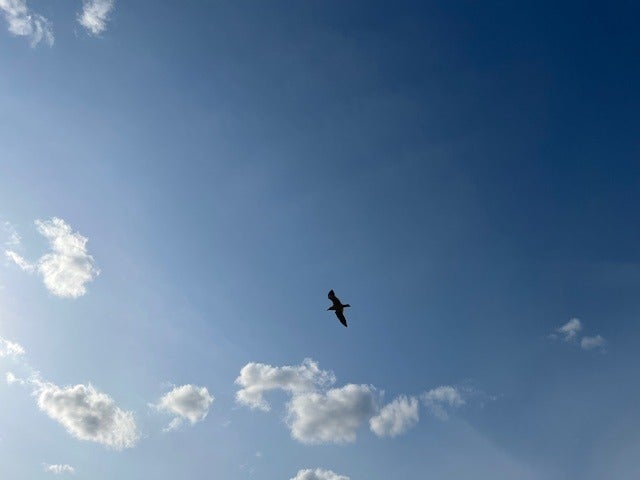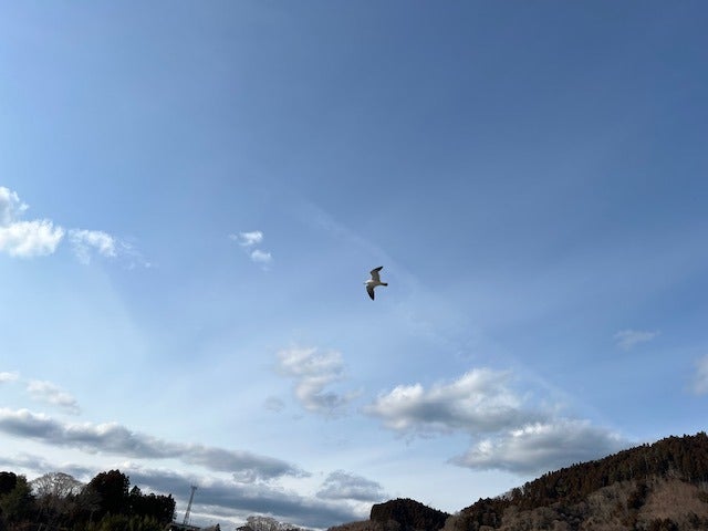 飛び去っていくウミネコに、