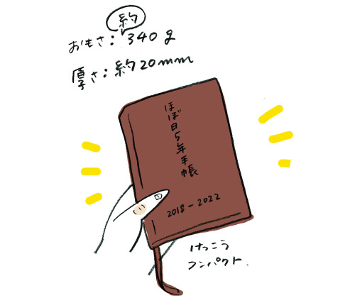 「ほぼ日5年手帳」がすっぽりおさまります。