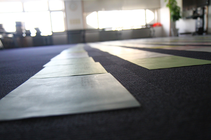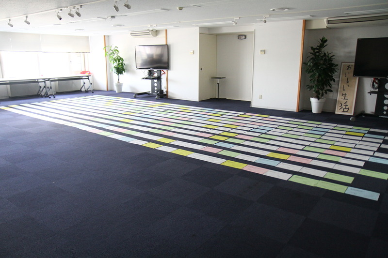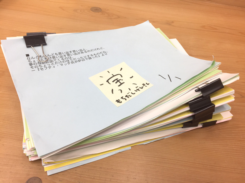 膨大な量の候補の言葉をカラフルな紙に出力し、