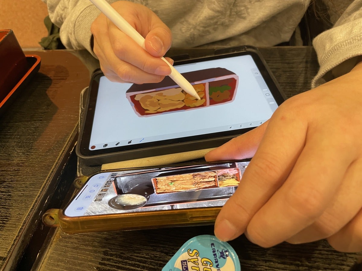 食べ終わるとまたすぐにペンを持ちます。