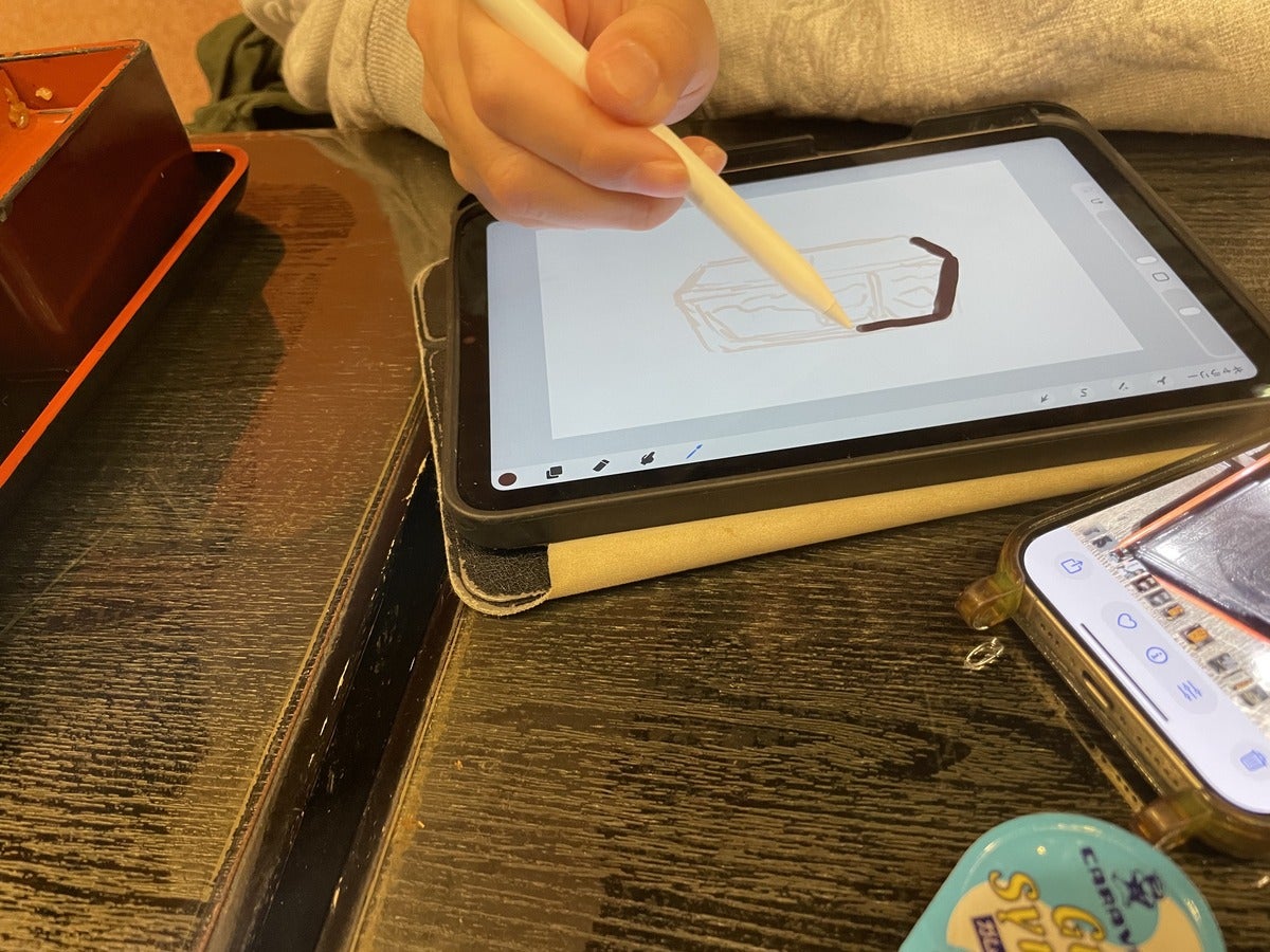 注文中も、描く、描く。