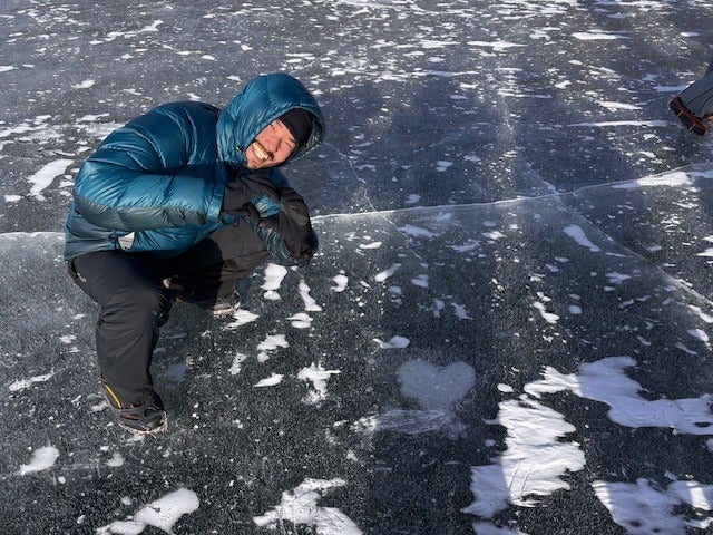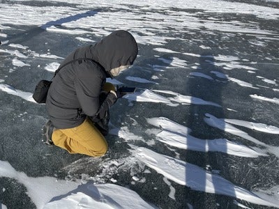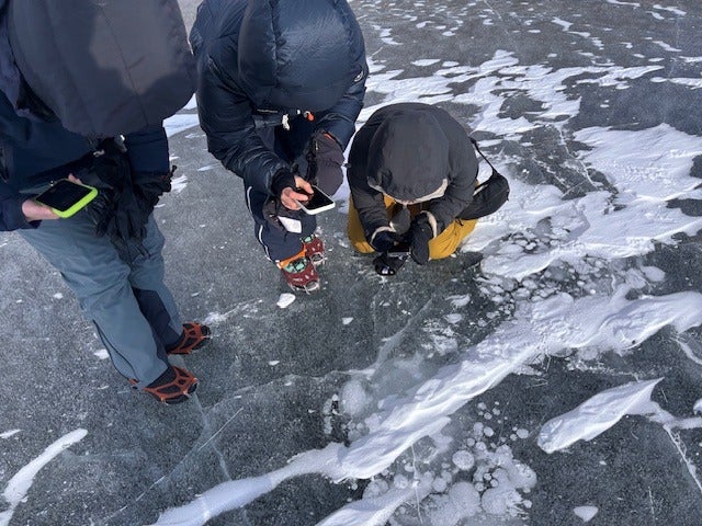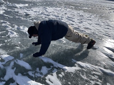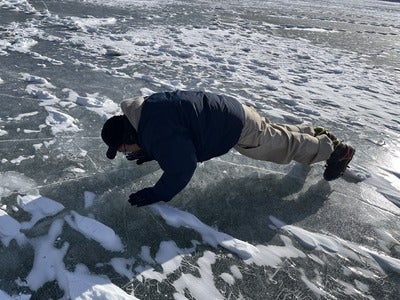 凍った湖の上にテントを張って、