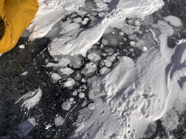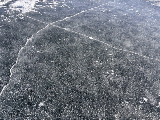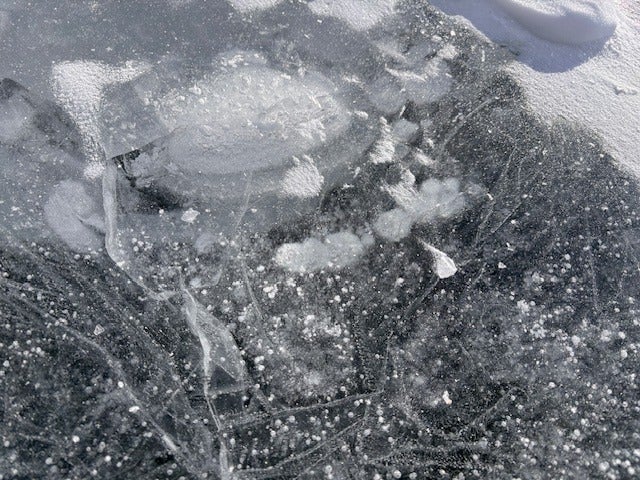 氷に穴をあけ、