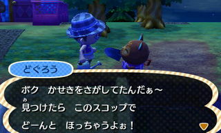 どぐろうが、スコップを片手に“かせき”をさがしていました。