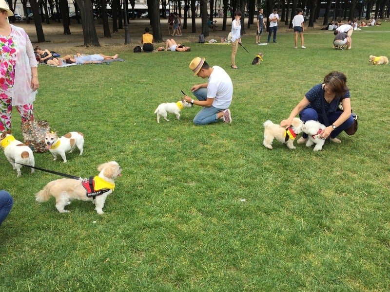 犬と人と飲み物。