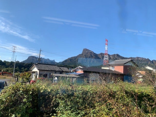 途中、すごい山が見えてきました。