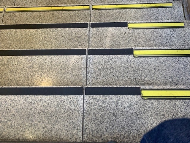 注意深く階段を降りまして。