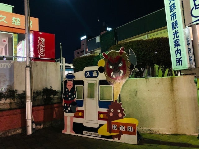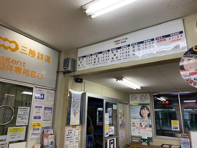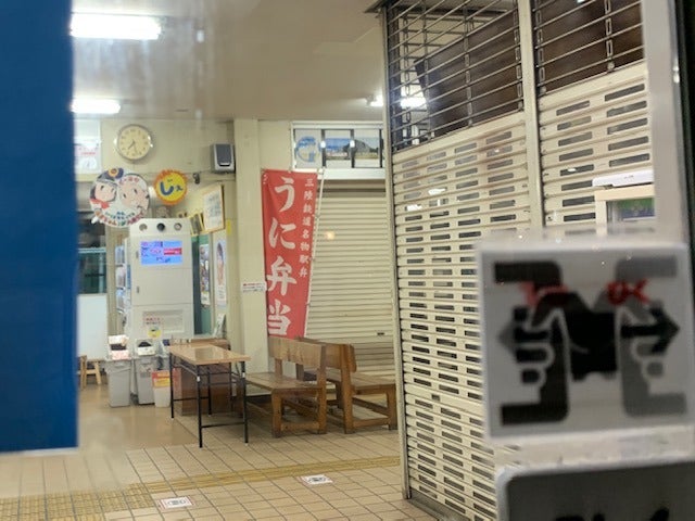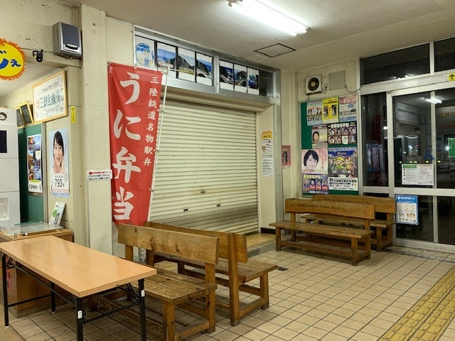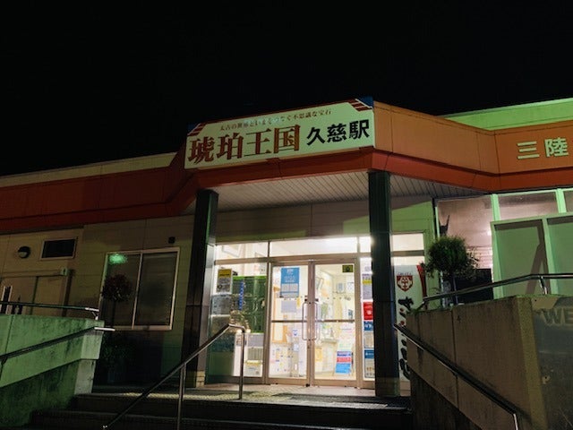 夜の、あんまり人のいない久慈の駅について、