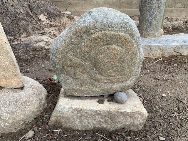 石に掘られた猫がかわいい。
