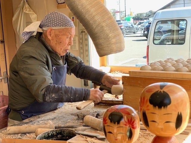 こけしづくりをしている
