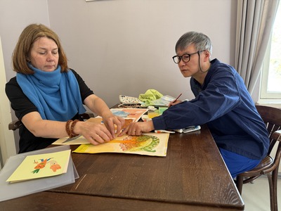 アンネといっしょに絵を描きました。