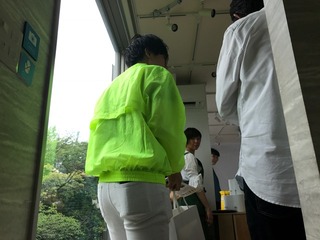 人がいるよ、ティッシュ渡さなきゃ。