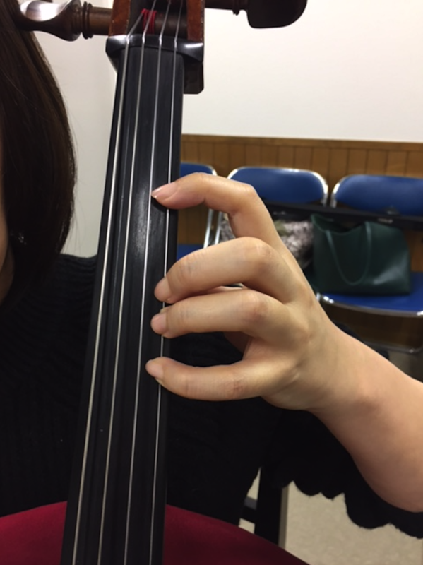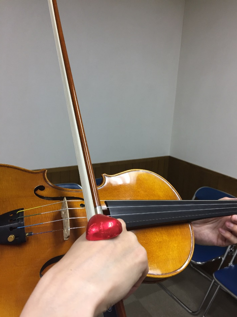 本来は弓の重心近くで弾くとよい音が出るそうです。