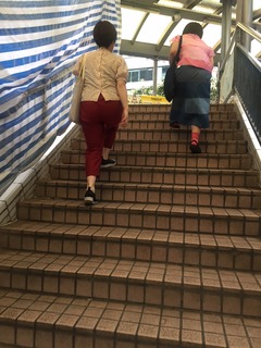 階段は一段飛ばしで登ります。