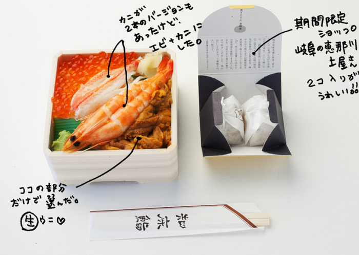 天むすのお弁当、 かわいらしくて女性っぽいお弁当ですね。 私も天むす好き、弁当好き、なので、 これは食べてみたいー! (よしこ) |