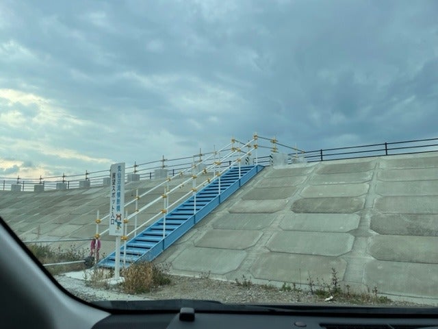 防潮堤の上。