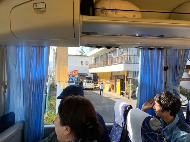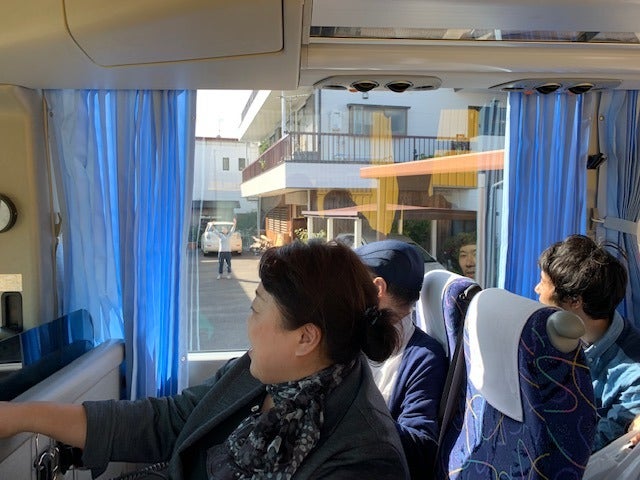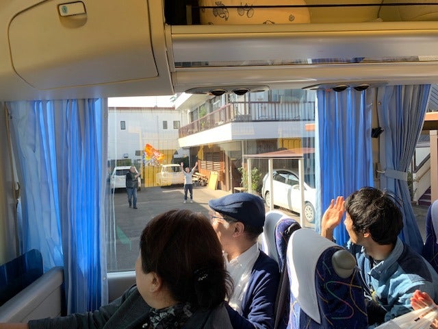 バスは、まるきの前に着きました!
