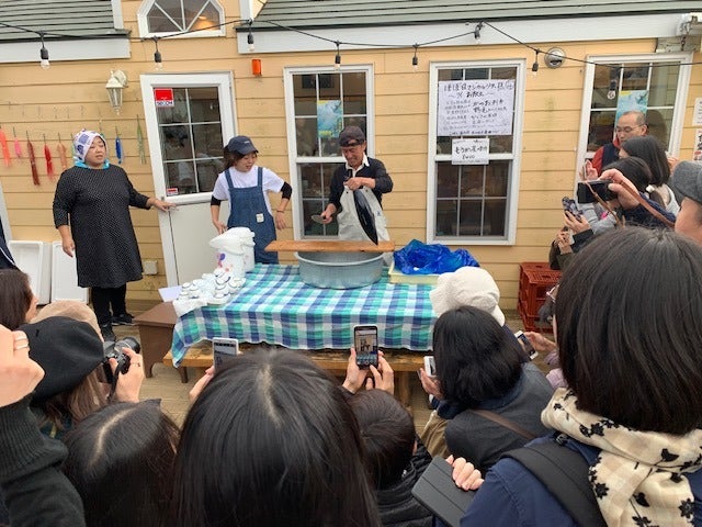 着くなり、カツオの解体が!