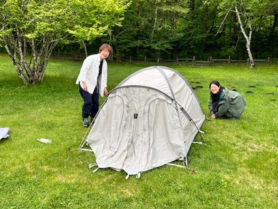 3つめのテントを、手伝ってみます。