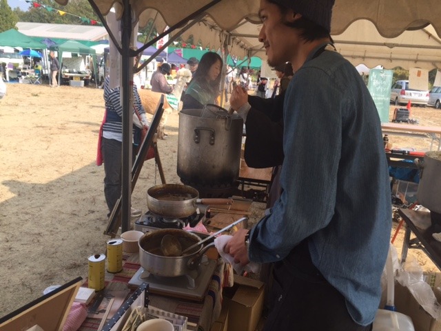 味噌屋さんの味噌汁を食べています)