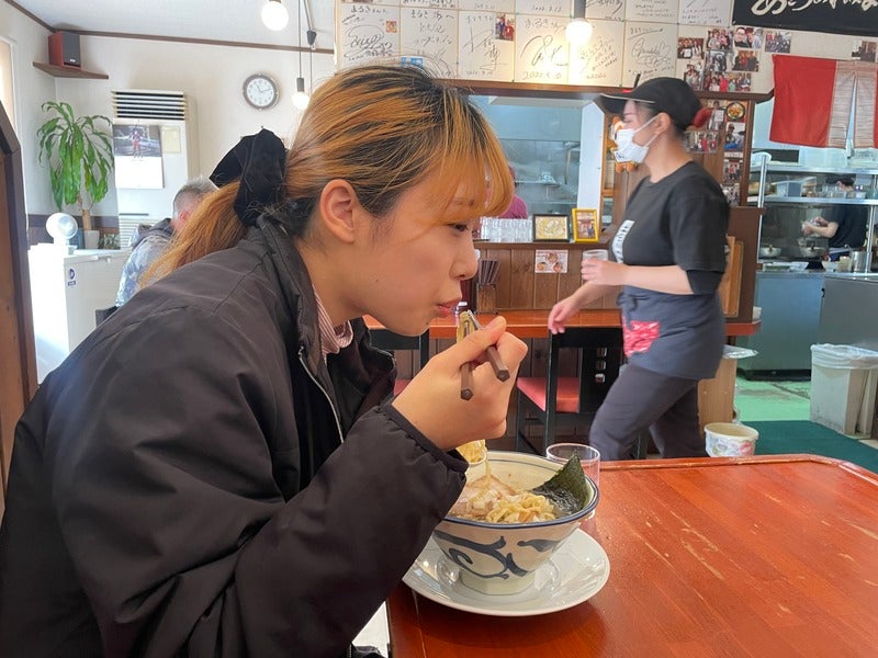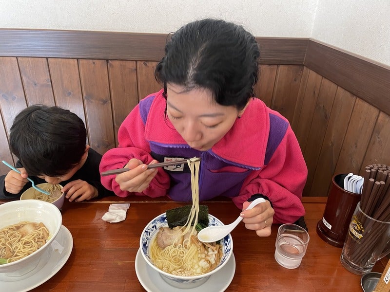 おいしすぎるスープをおいしすぎる麺で食べています。